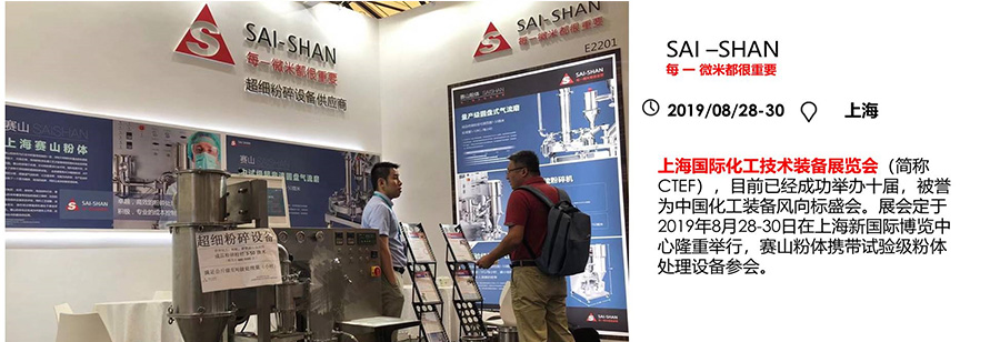 上海国际化工技术装备展览会(简称CTEF),目前已经成功举办十届,被誉为中国化工装备风向标盛会。展会定于2019年8月28-30日在上海新国际博览中心隆重举行,ac米兰官网粉体携带试验级粉体处理设备参会。